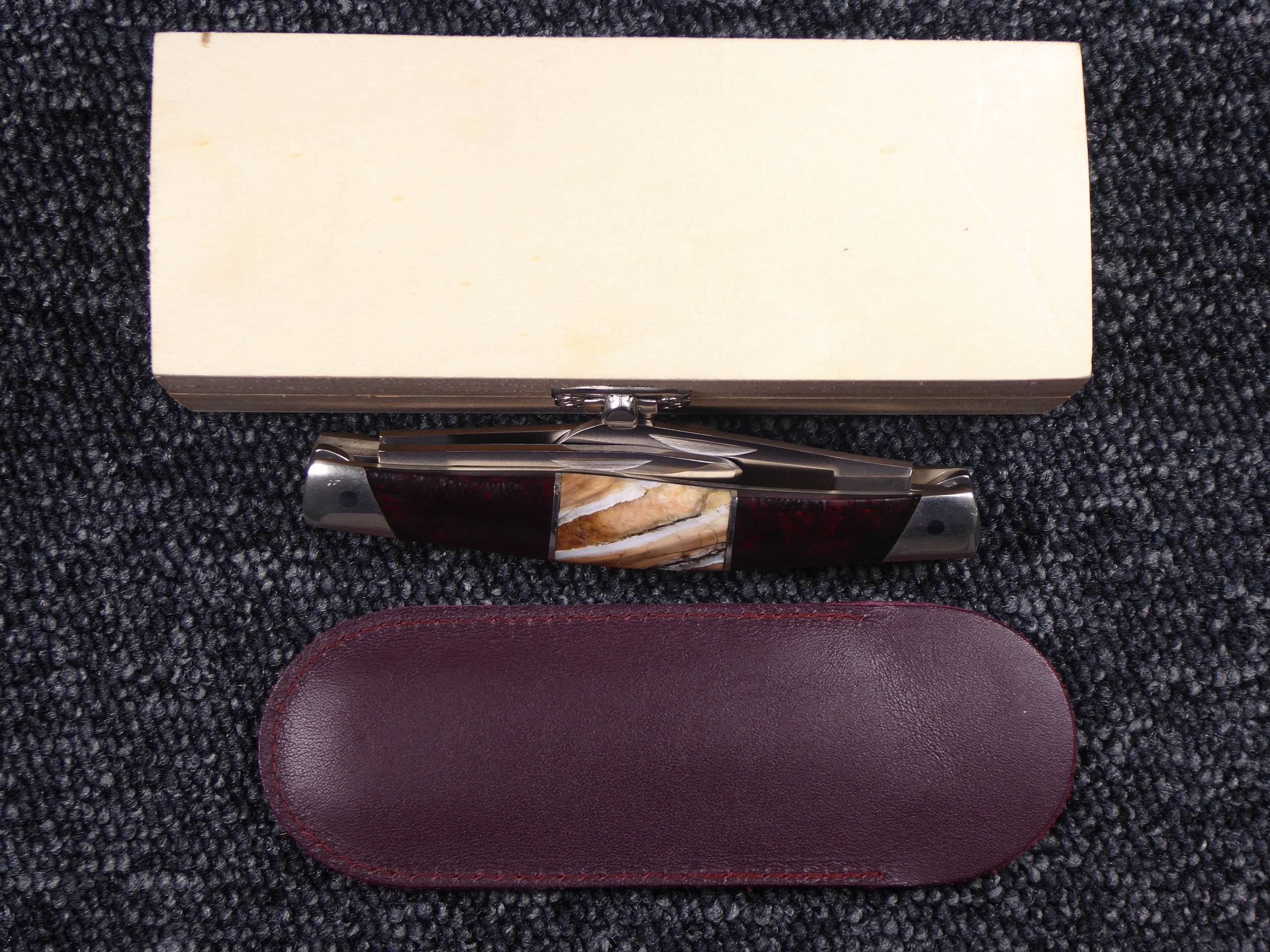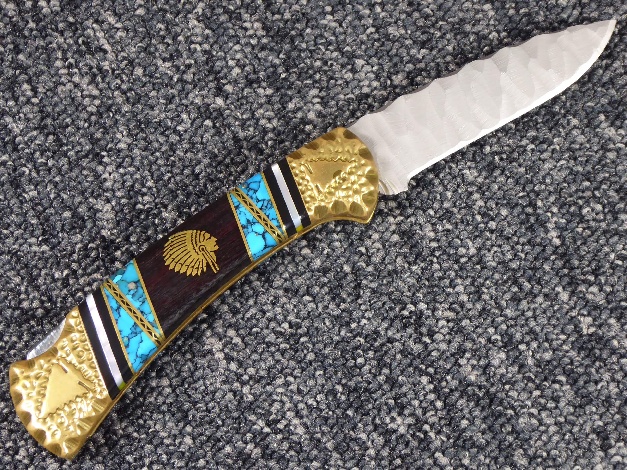 Griff: Handmade von Dave Yellowhorse, Inlays Halbedelsteine, Holz, Bolster Messing