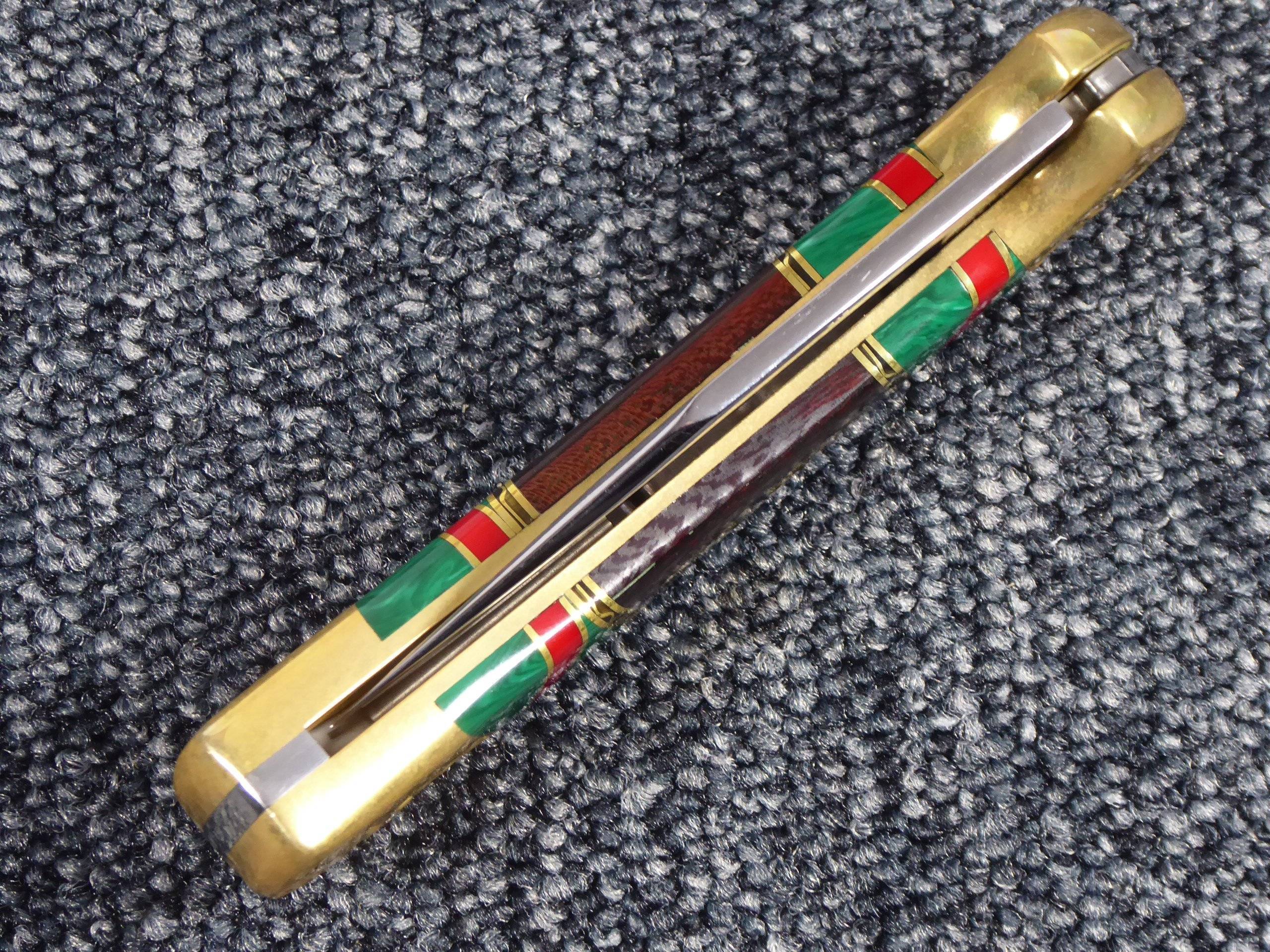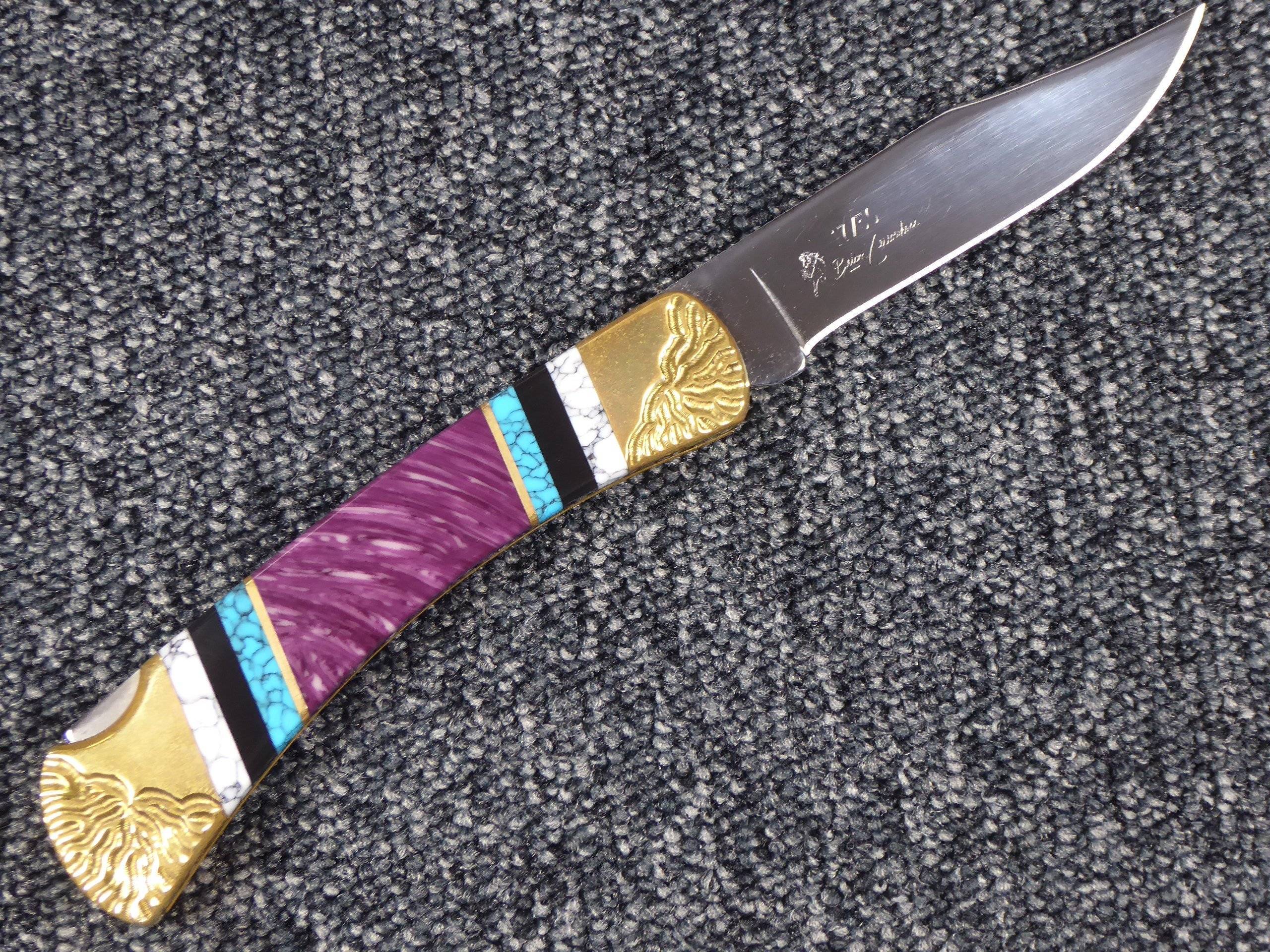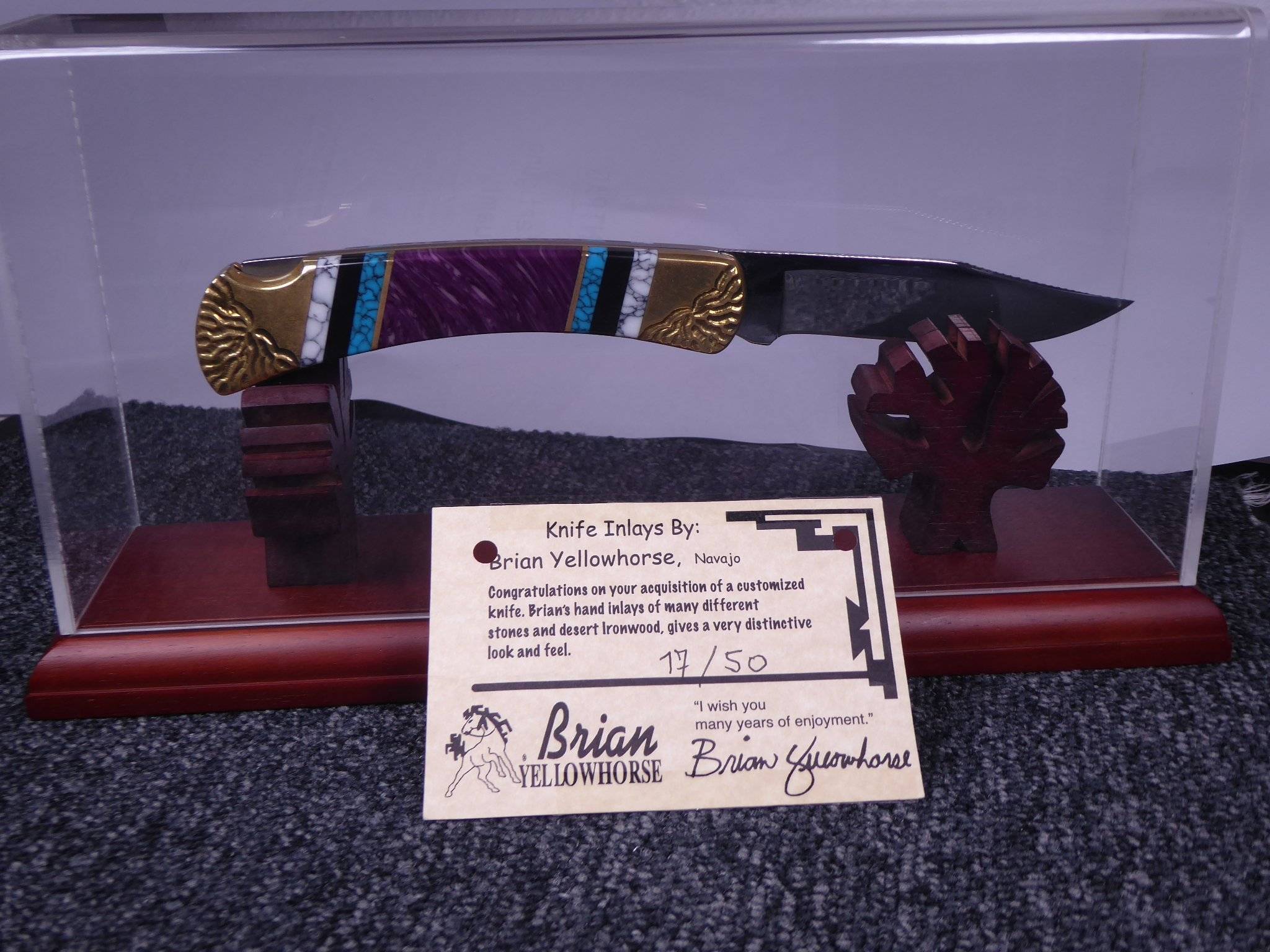 Griff: Handmade von Brian Yellowhorse, Inlays Halbedelsteine, Holz, Bolster Messing