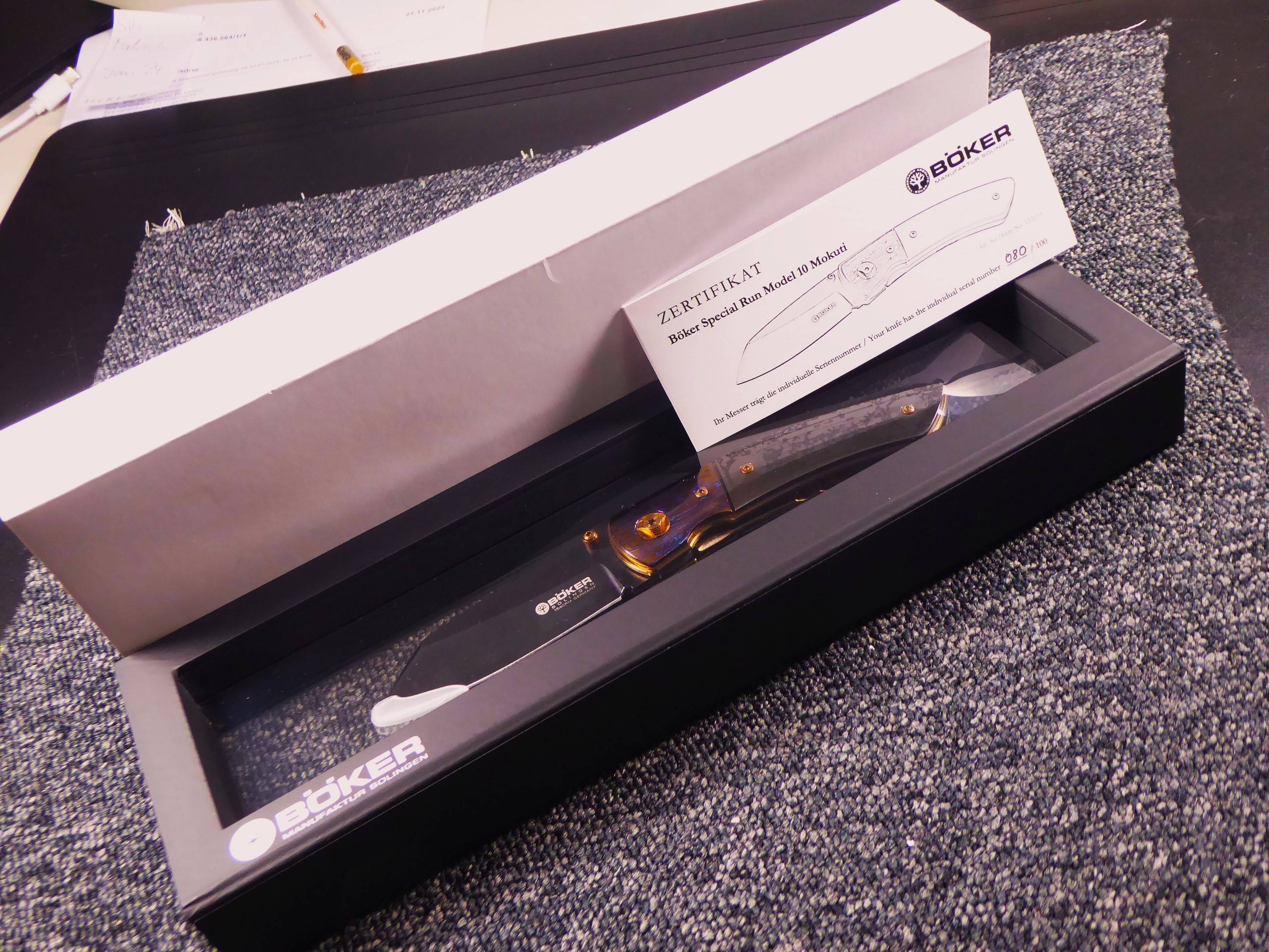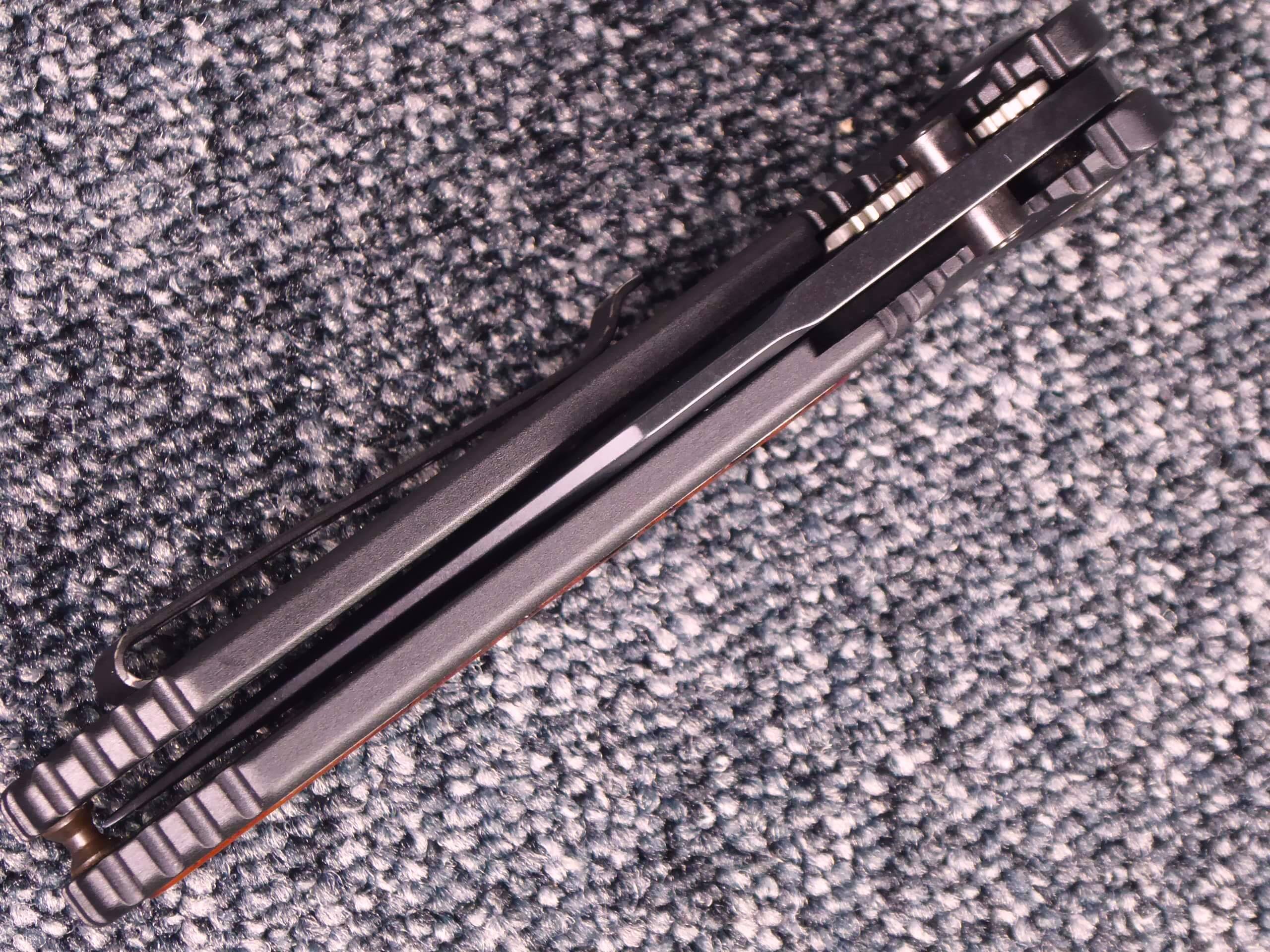Klinge: Niolox, PVD beschichtet, graviert mit Mr. DP Muster